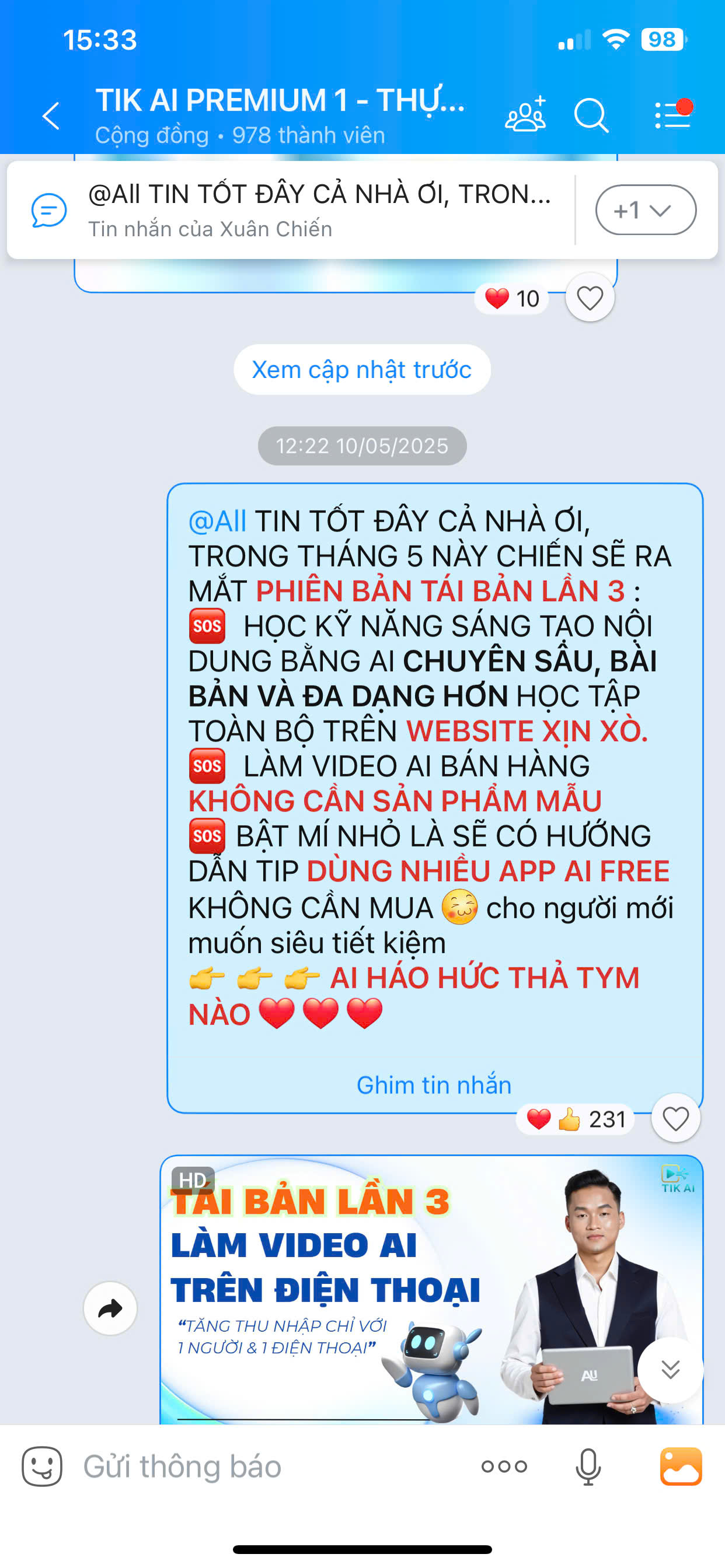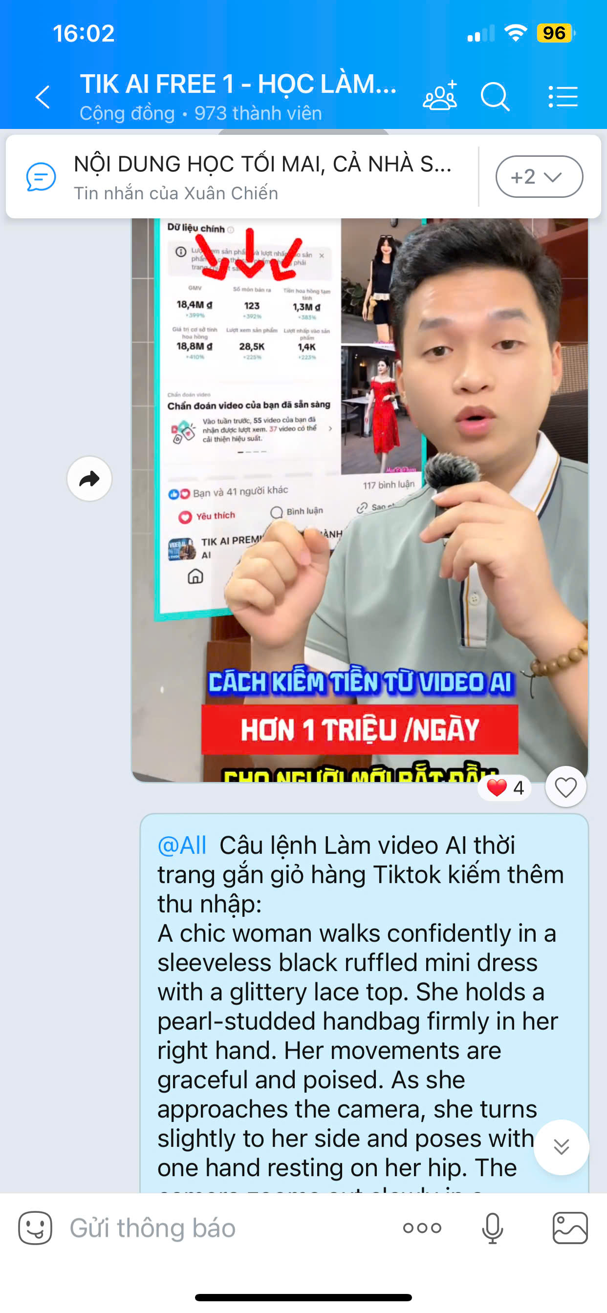 Tham gia group hỗ trợ học viên trong quá trình học viên 24/7 và học hỏi từ các học viên thu nhập từ Video AI 10-25tr/ tháng