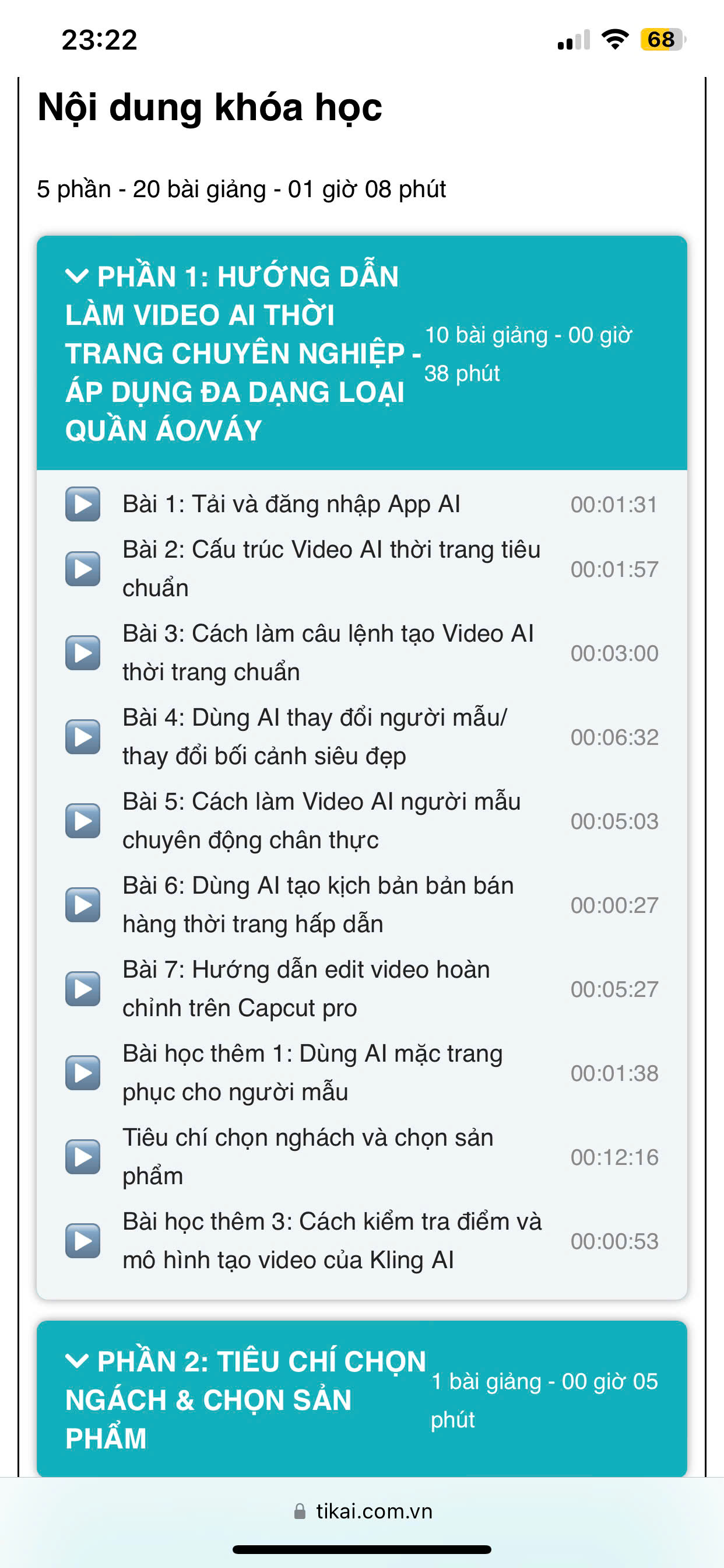 Khóa học hướng dẫn thao tác trên điện thoại chi tiết làm video AI thời trang – Thời hạn 1 năm do Giảng viên Xuân Chiến đào tạo